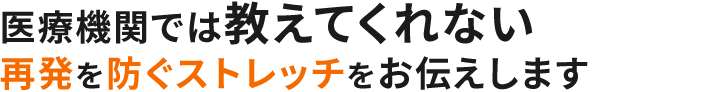 その原因は、あなたに合った正しいストレッチができていないからかもしれません。だから当院は、あなたの今の状態に合わせた自宅でできる予防法やストレッチ指導を行います。