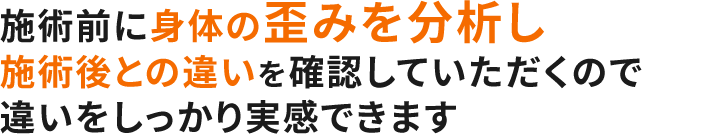 施術前に身体の歪みを分析し、施術後に確認して頂くことで、施術効果をより実感していただくことができます。